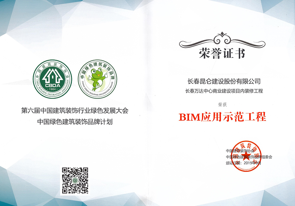 建筑装饰BIM大赛证书